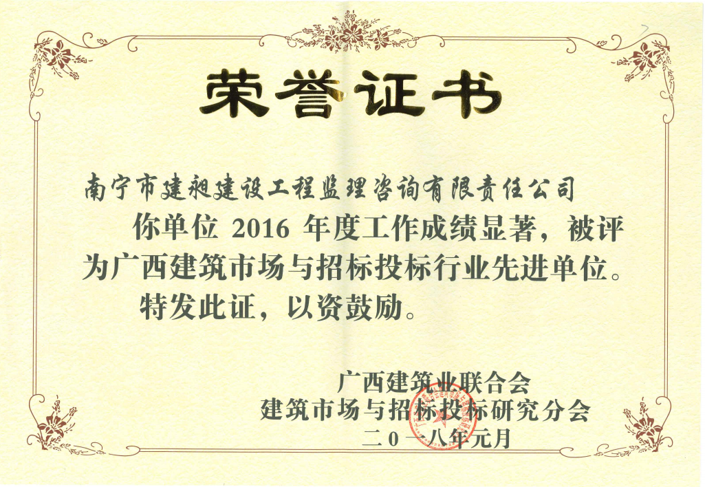 熱烈祝賀我公司再次榮獲“廣西建筑市場與招標(biāo)投標(biāo)行業(yè)先進(jìn)單位”榮譽稱號,從2011年起已連續(xù)6年榮獲此殊榮。同時還有3位同志榮獲“廣西招標(biāo)投標(biāo)代理機構(gòu)先進(jìn)個人”稱號,向他們表示祝賀。